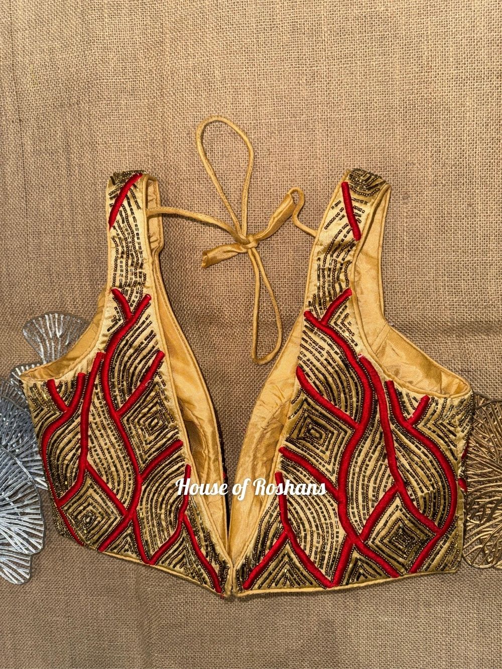 Embroidered Deep Neck Sleeveless Blouse