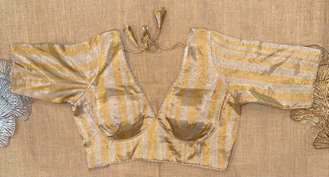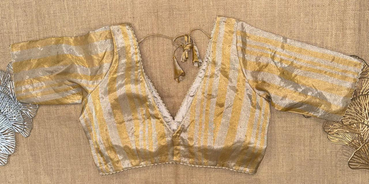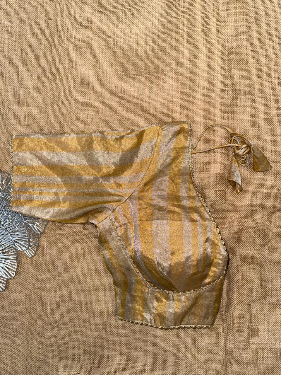 Golden And Grey Stripes Tissue BLouse
