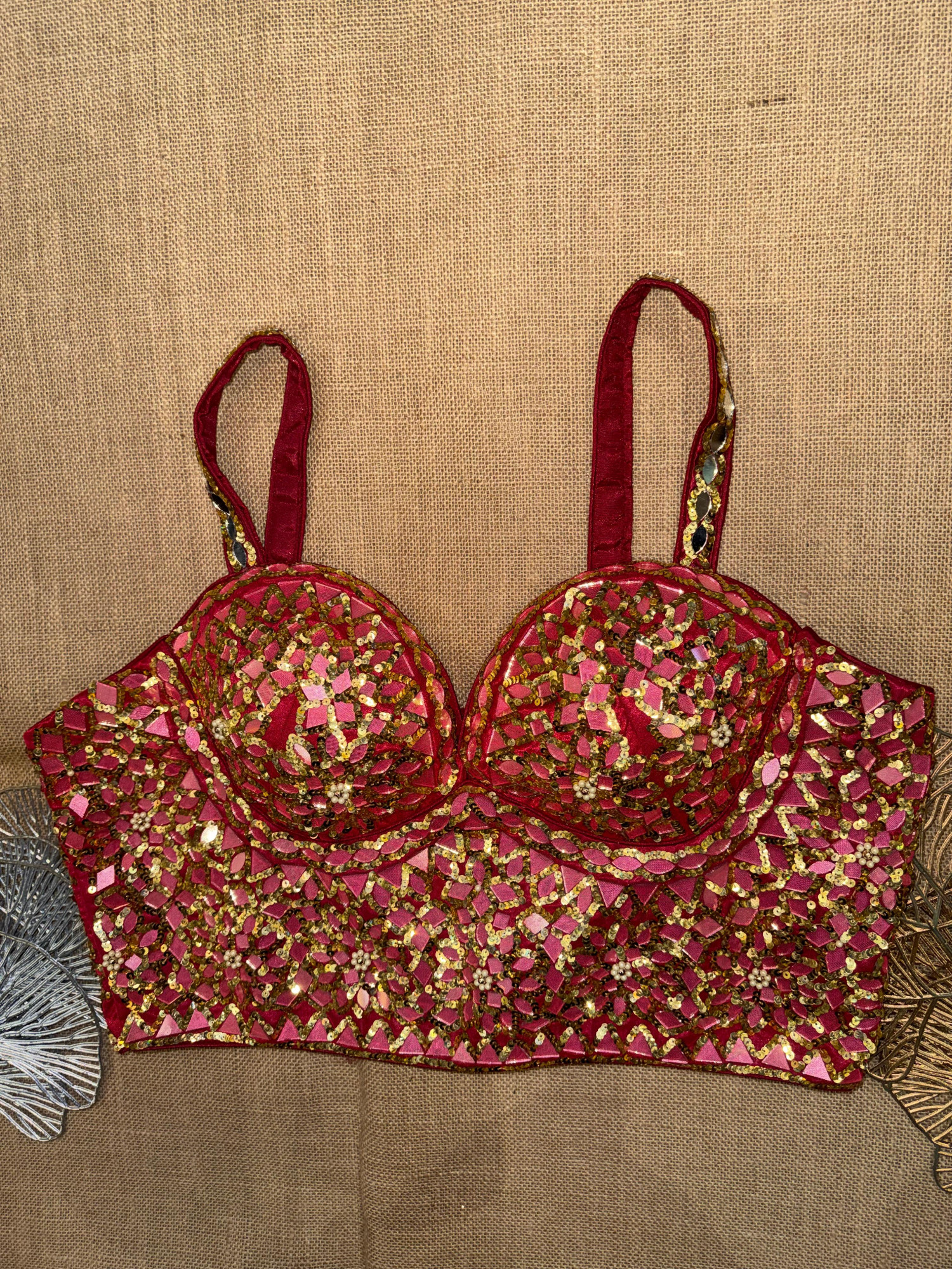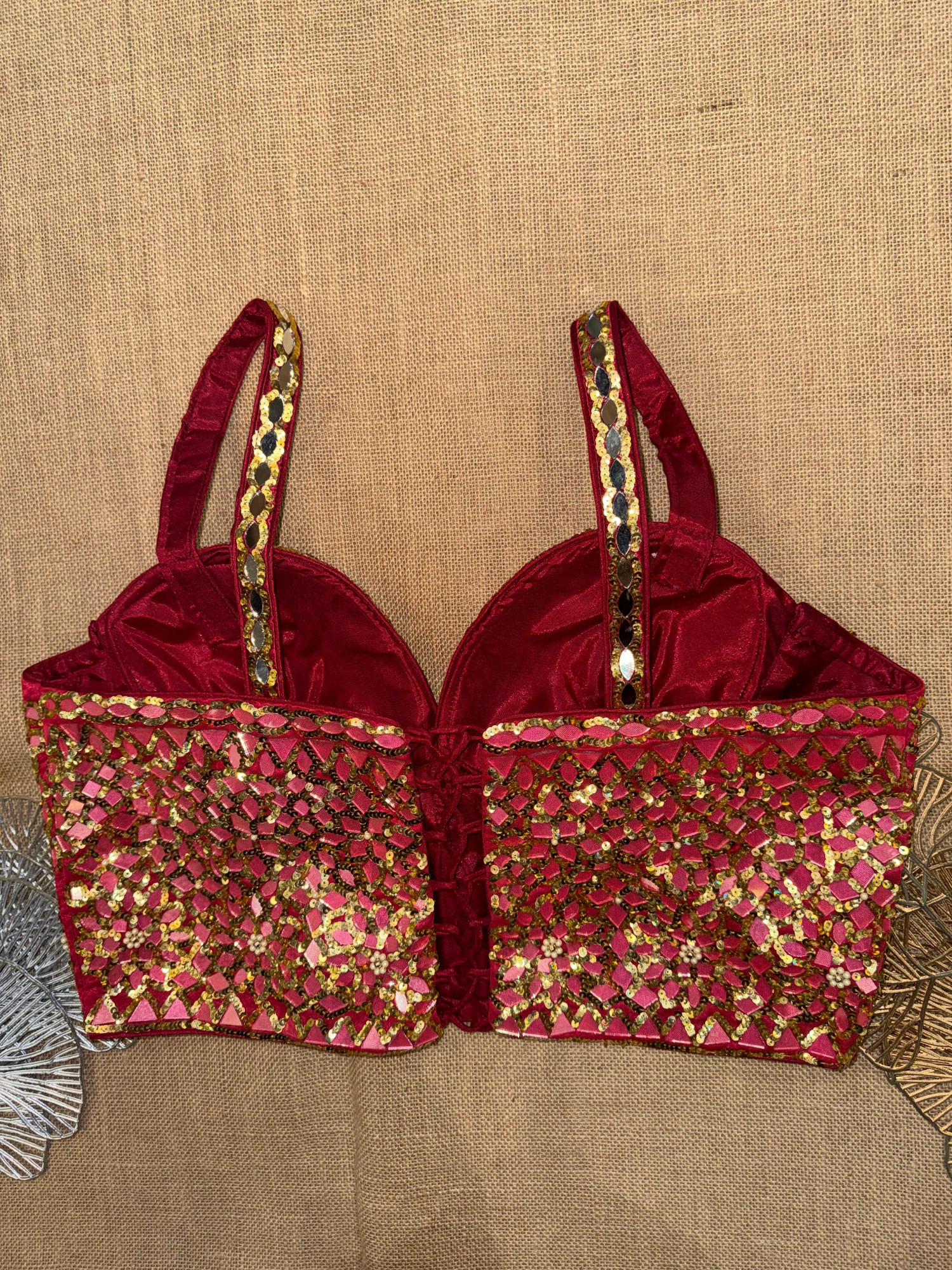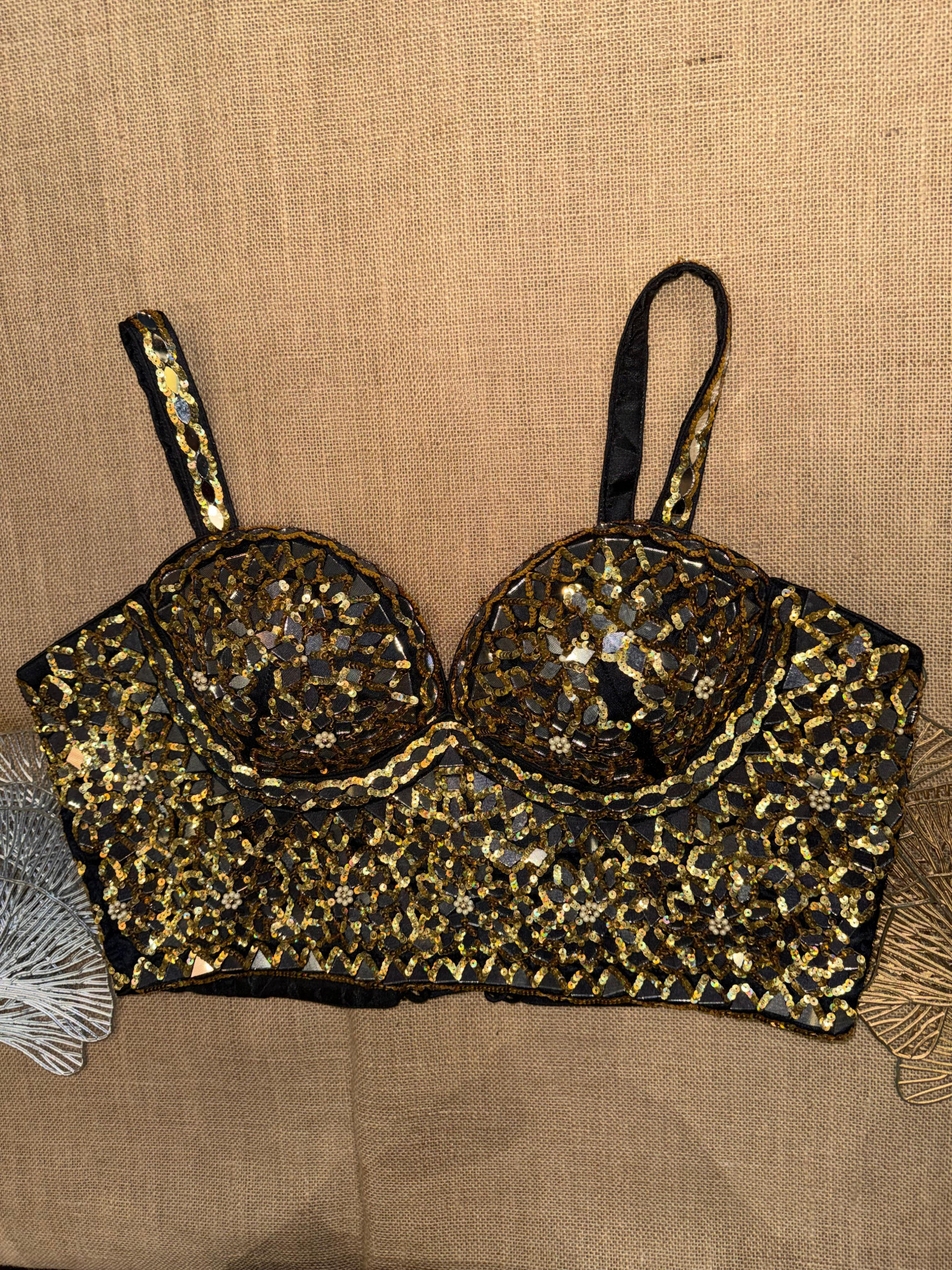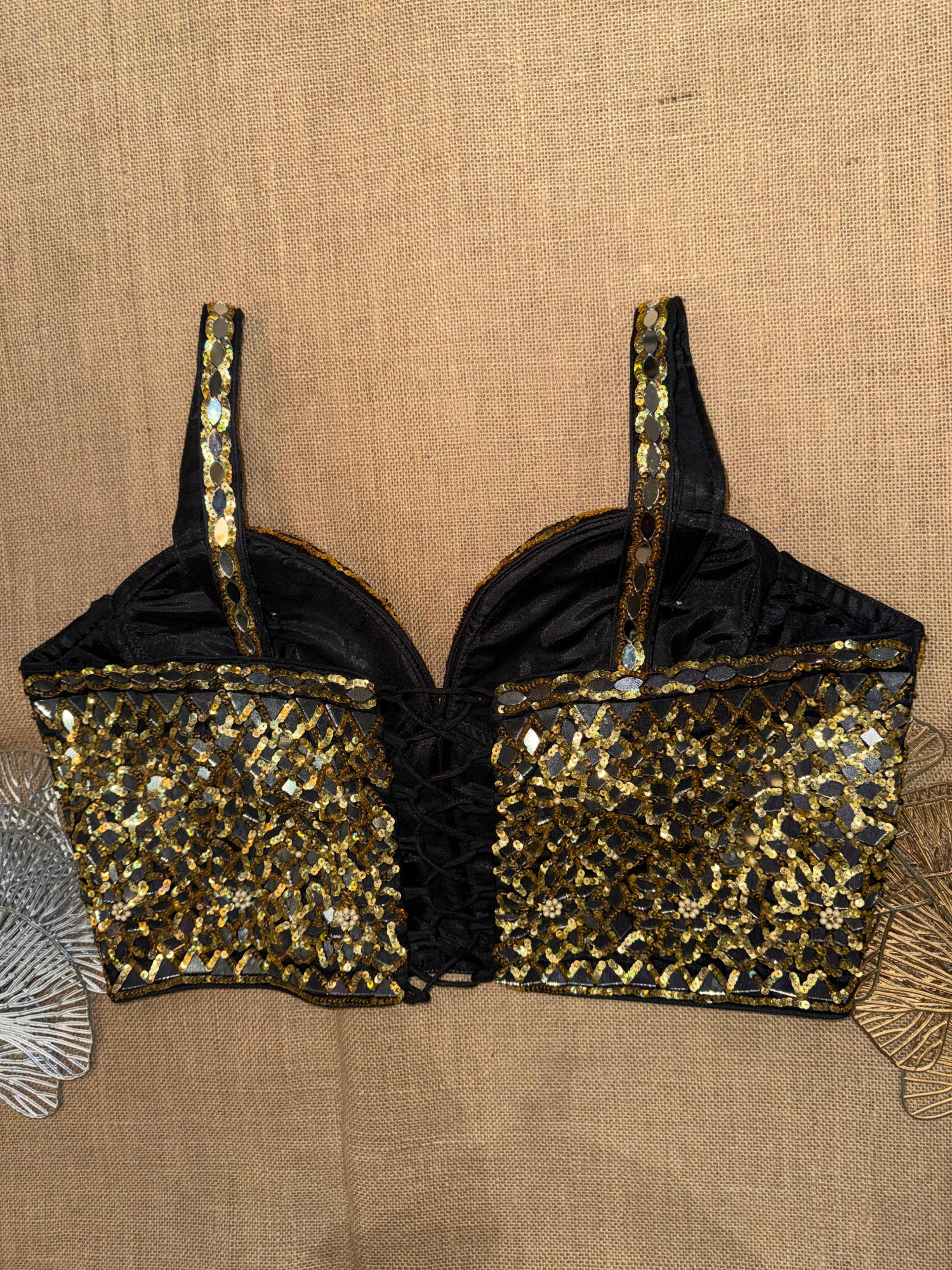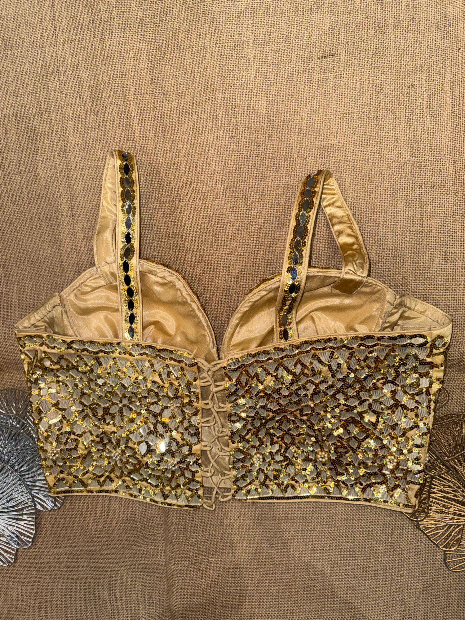 Mirror And Sequin Hand Embroidery Corset