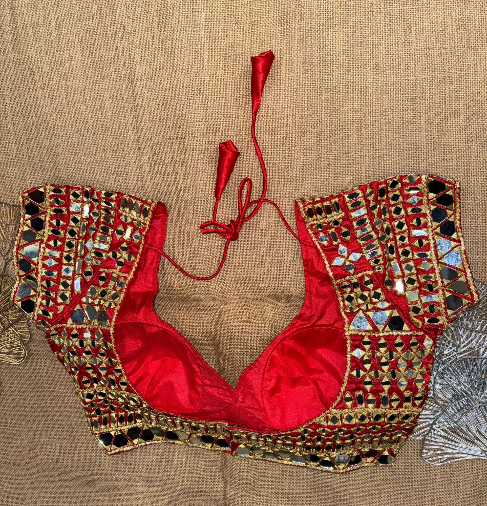 Mirror Gota Embroidery Choli Cut Blouse with Cap Sleeves