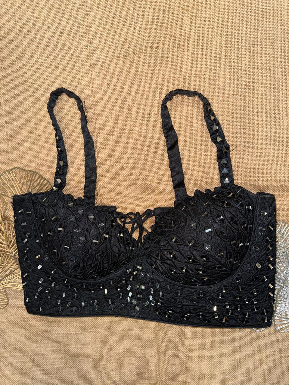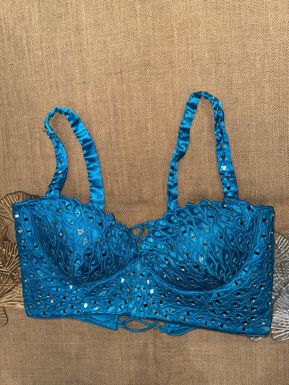 Mirror Work Strappy Party Corset Blouse