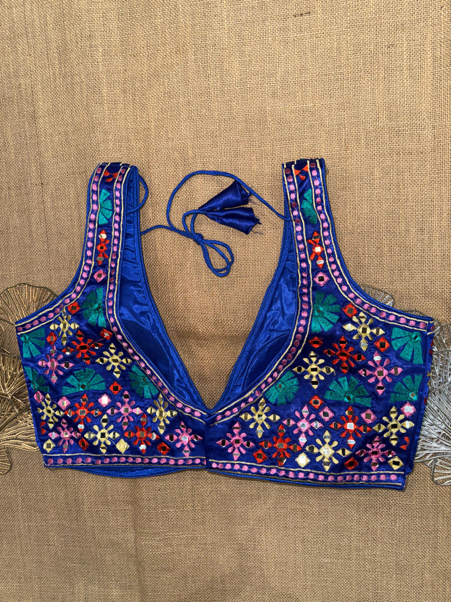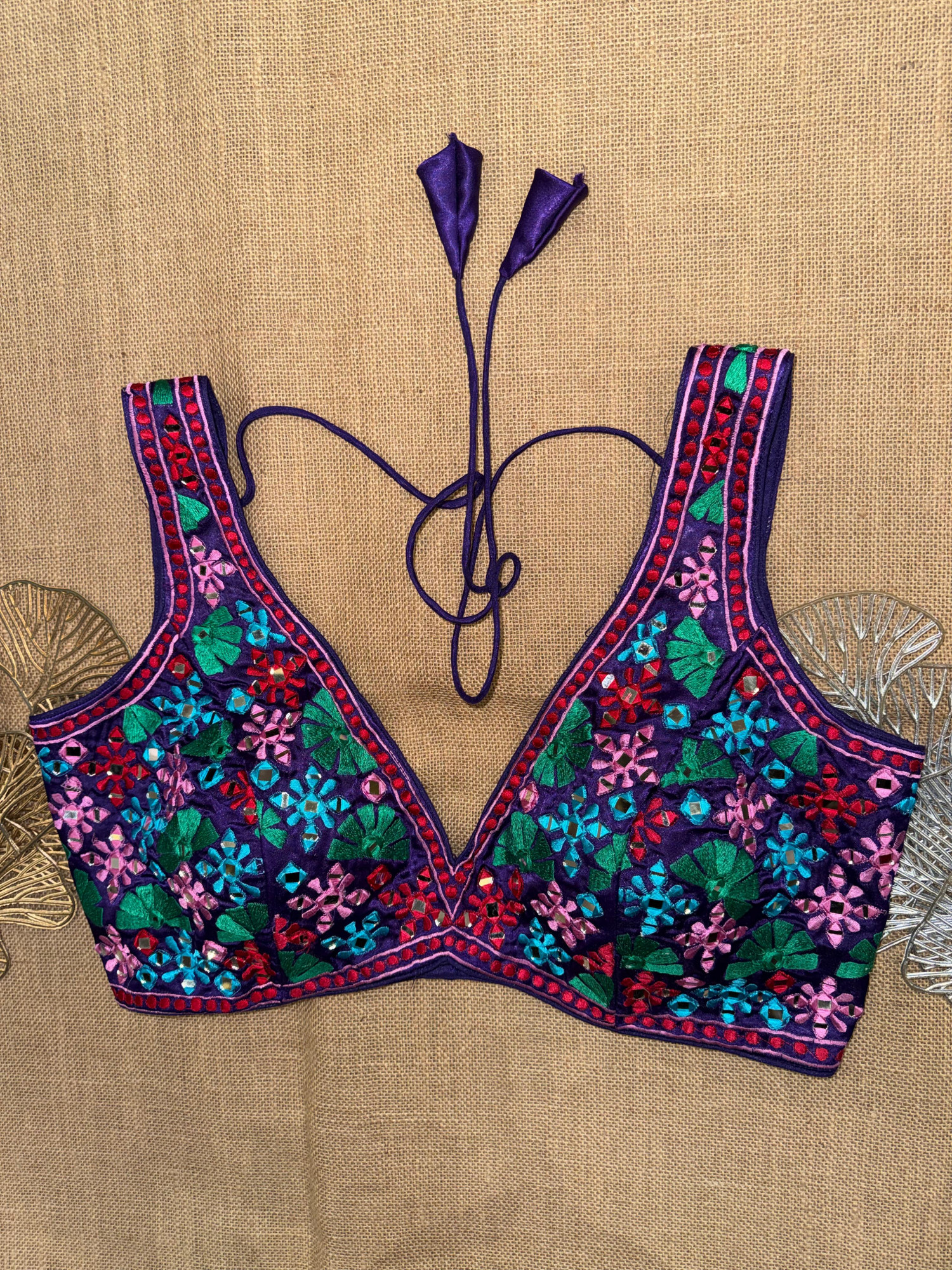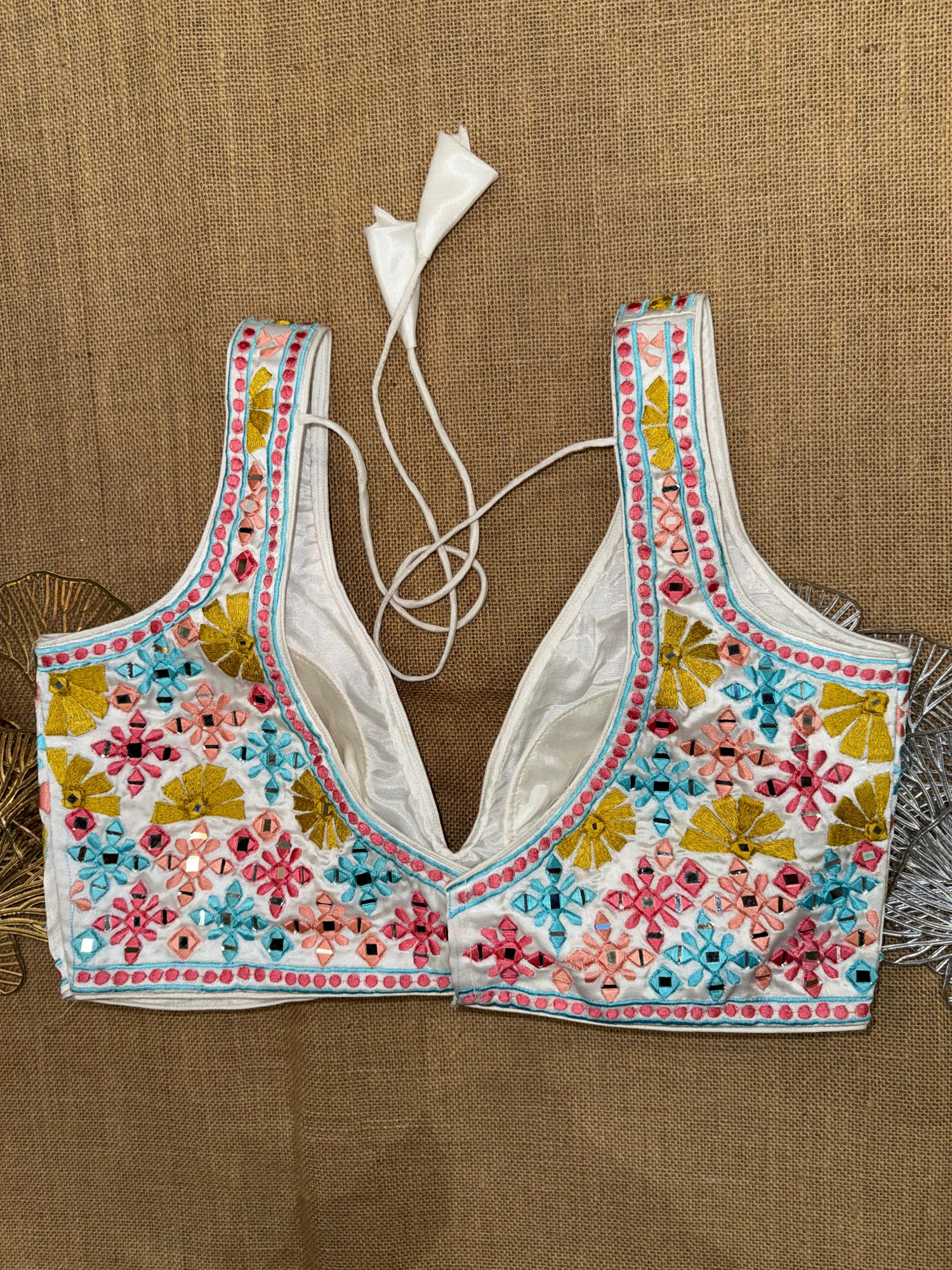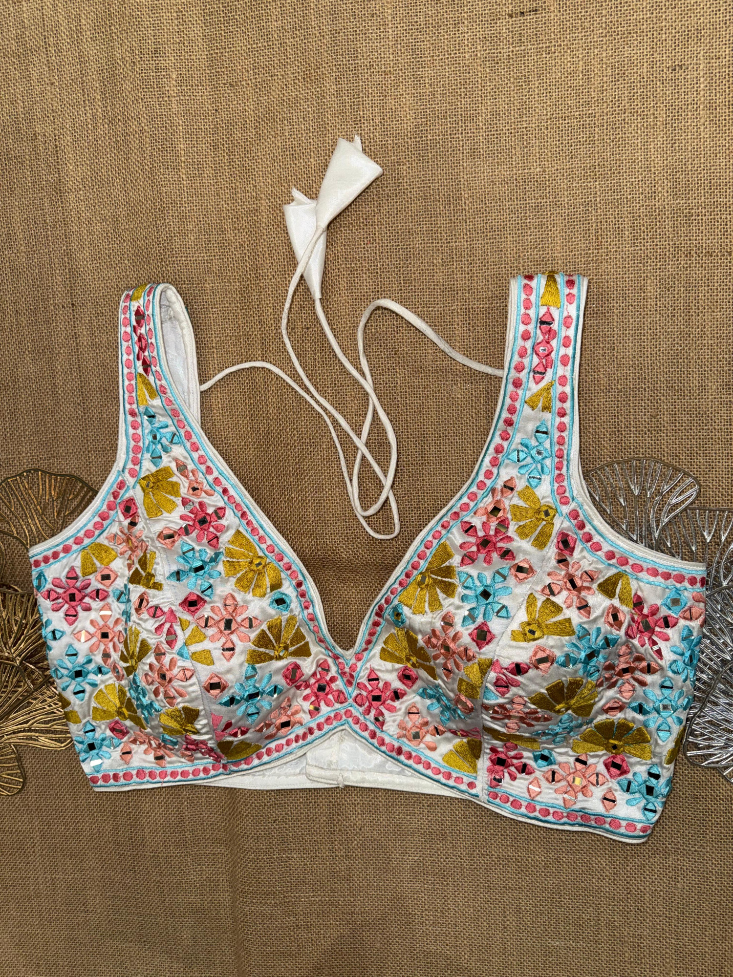 Multicolor Embroidery Sleeveless Mirror Blouse