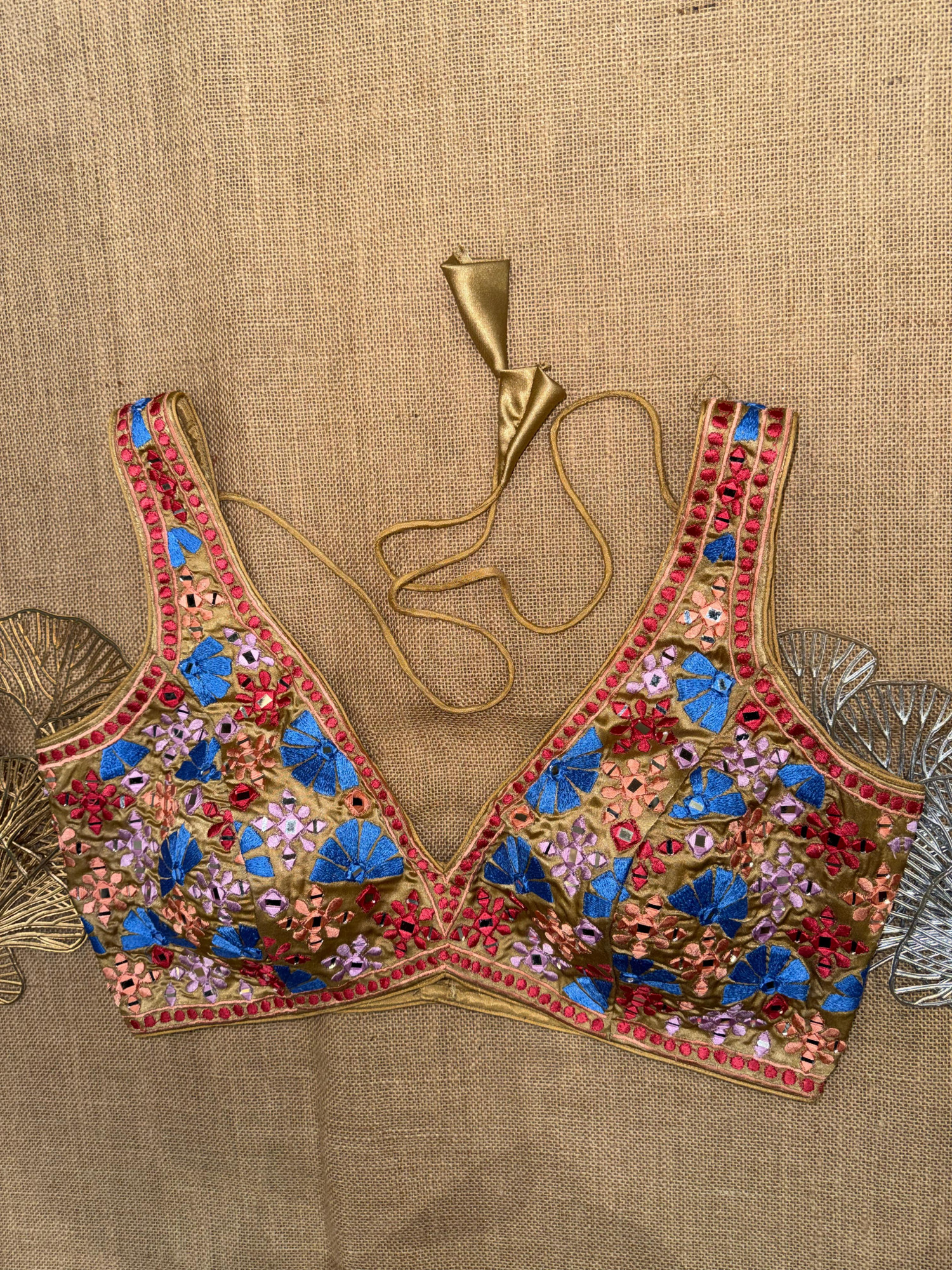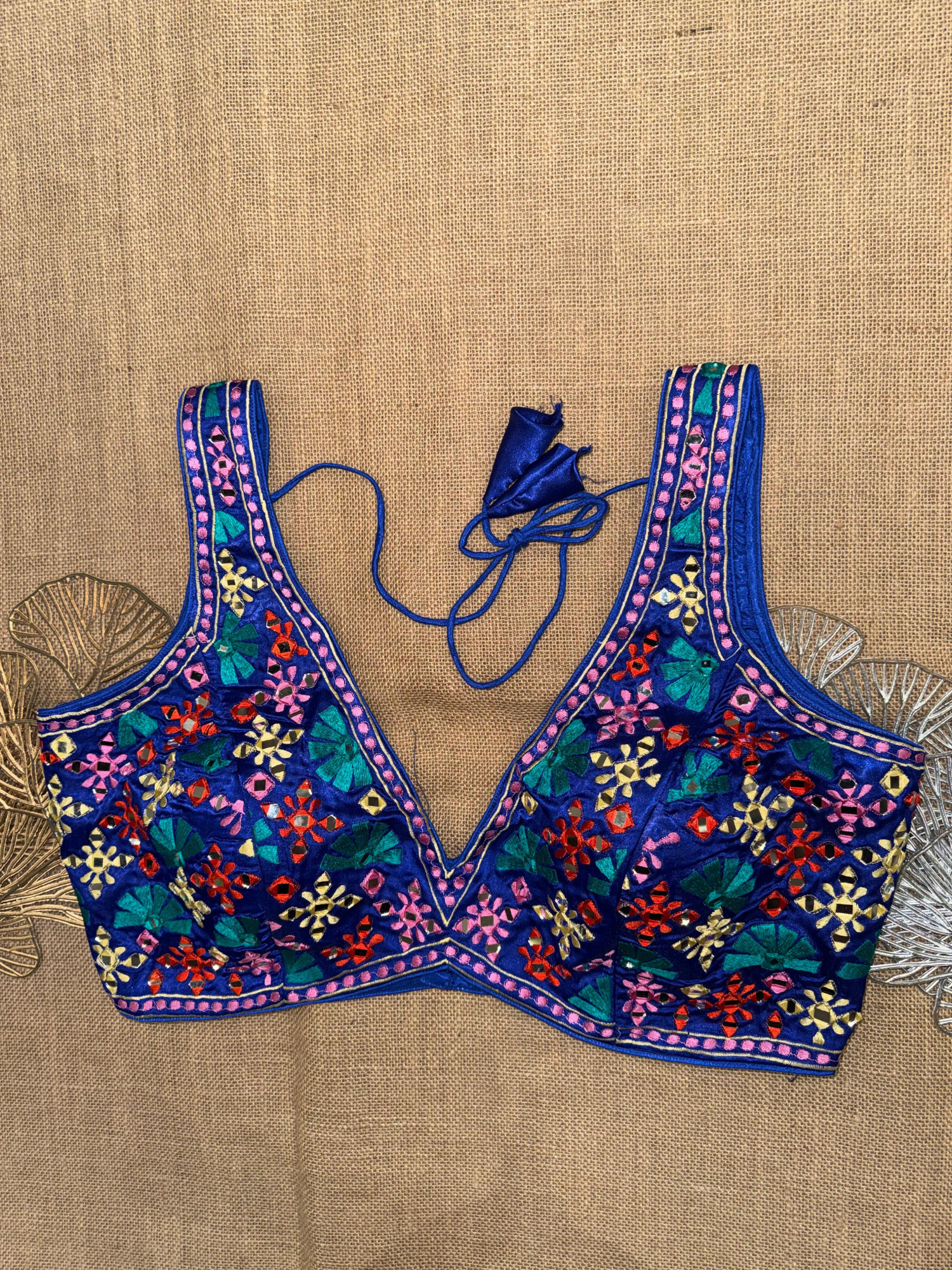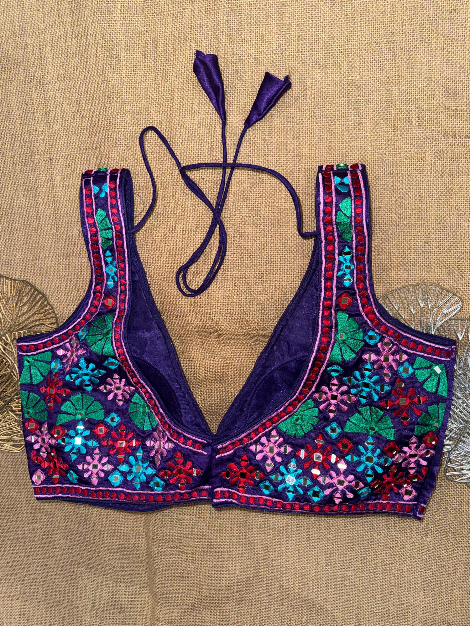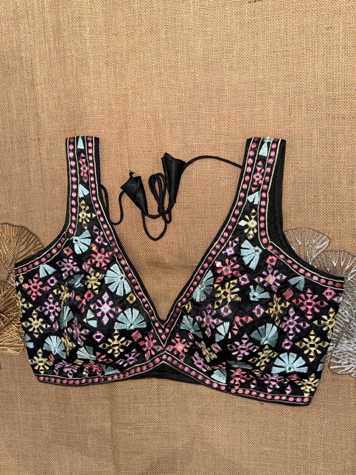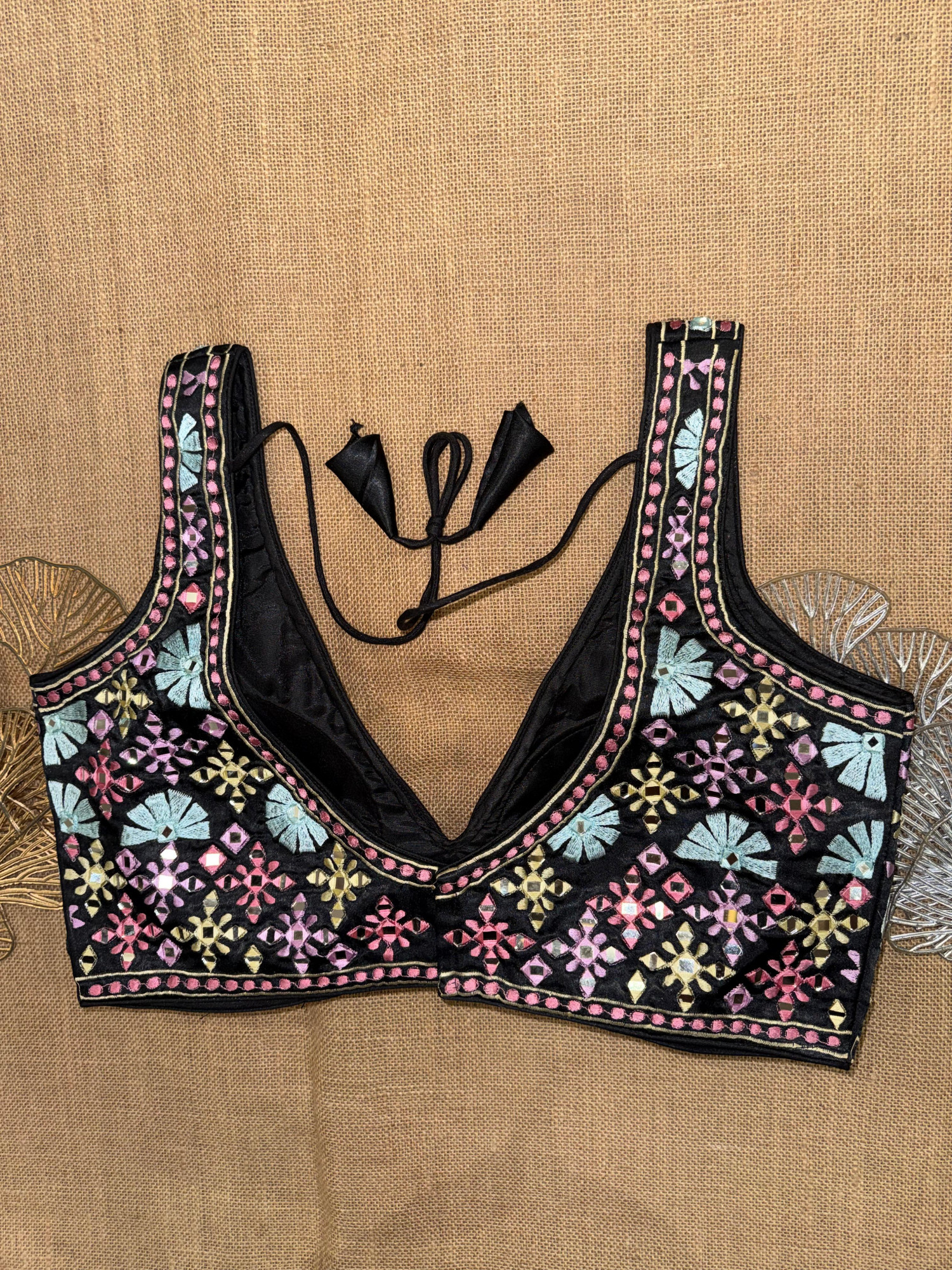 Multicolor Embroidery Sleeveless Mirror Blouse