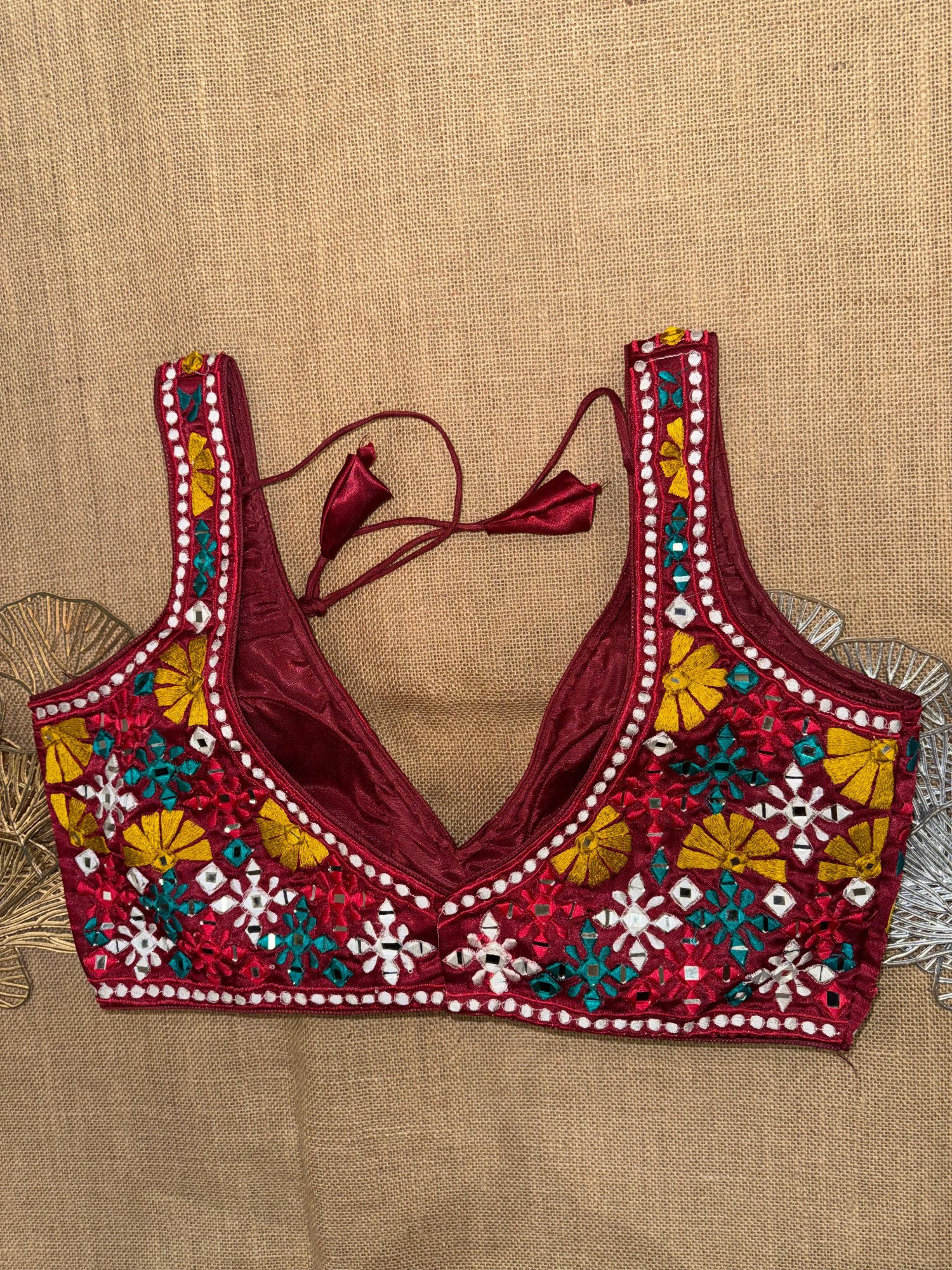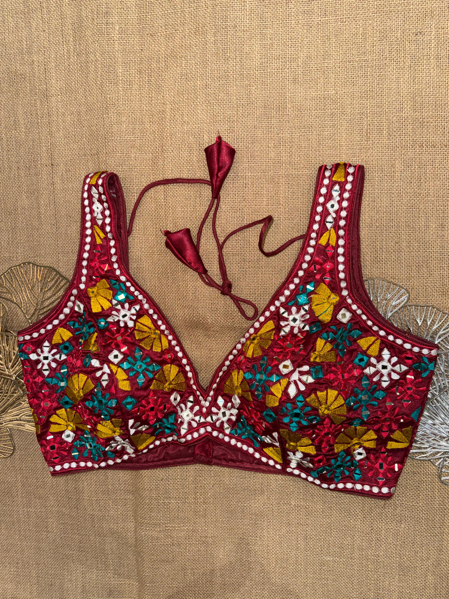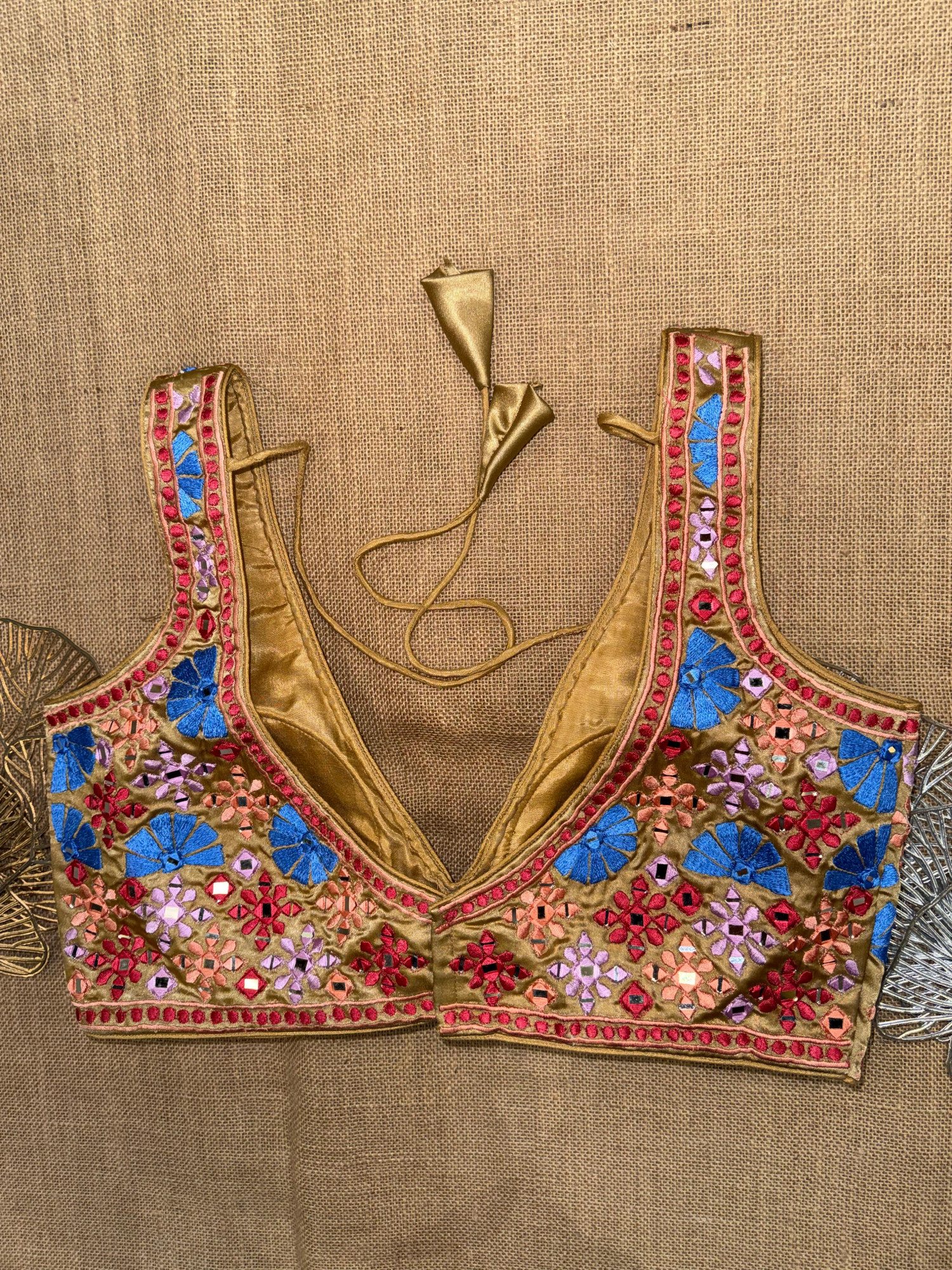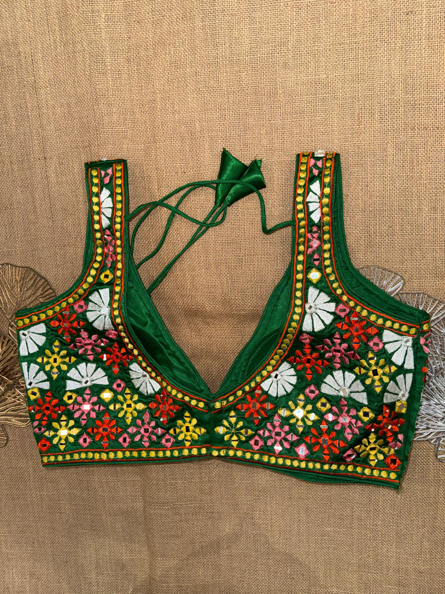 Multicolor Embroidery Sleeveless Mirror Blouse