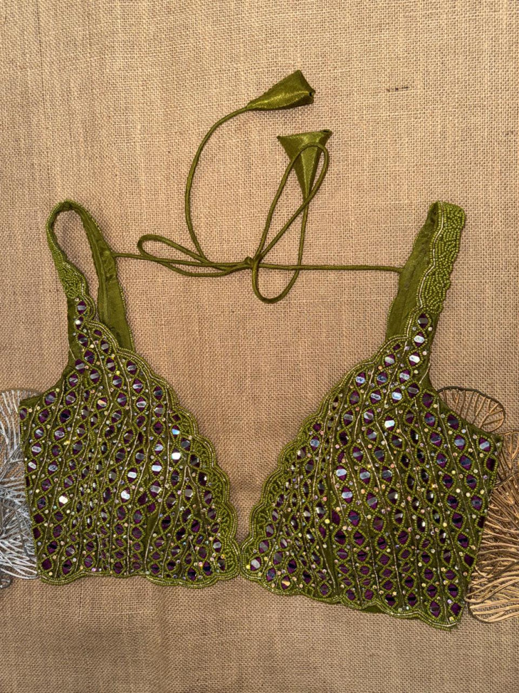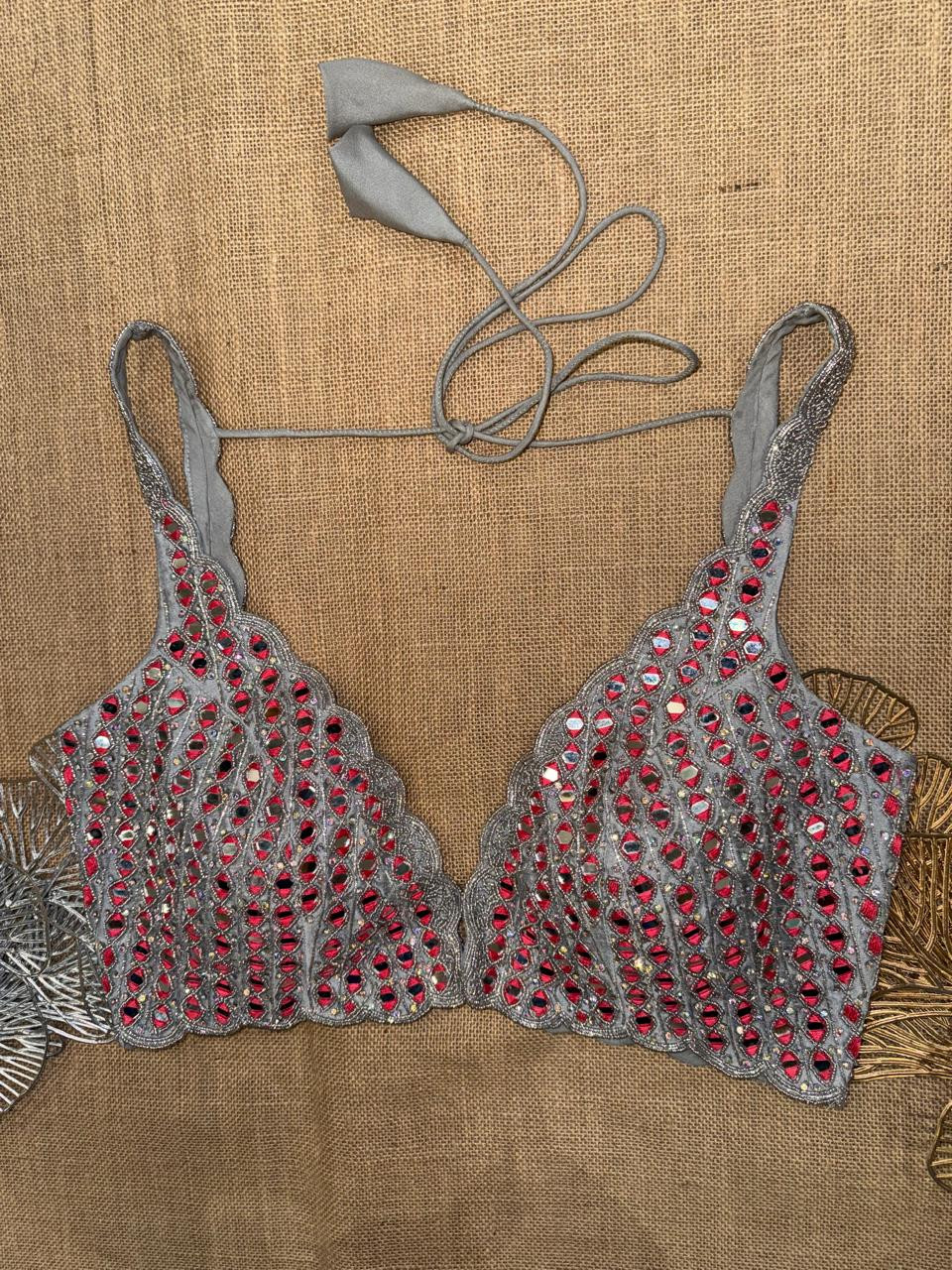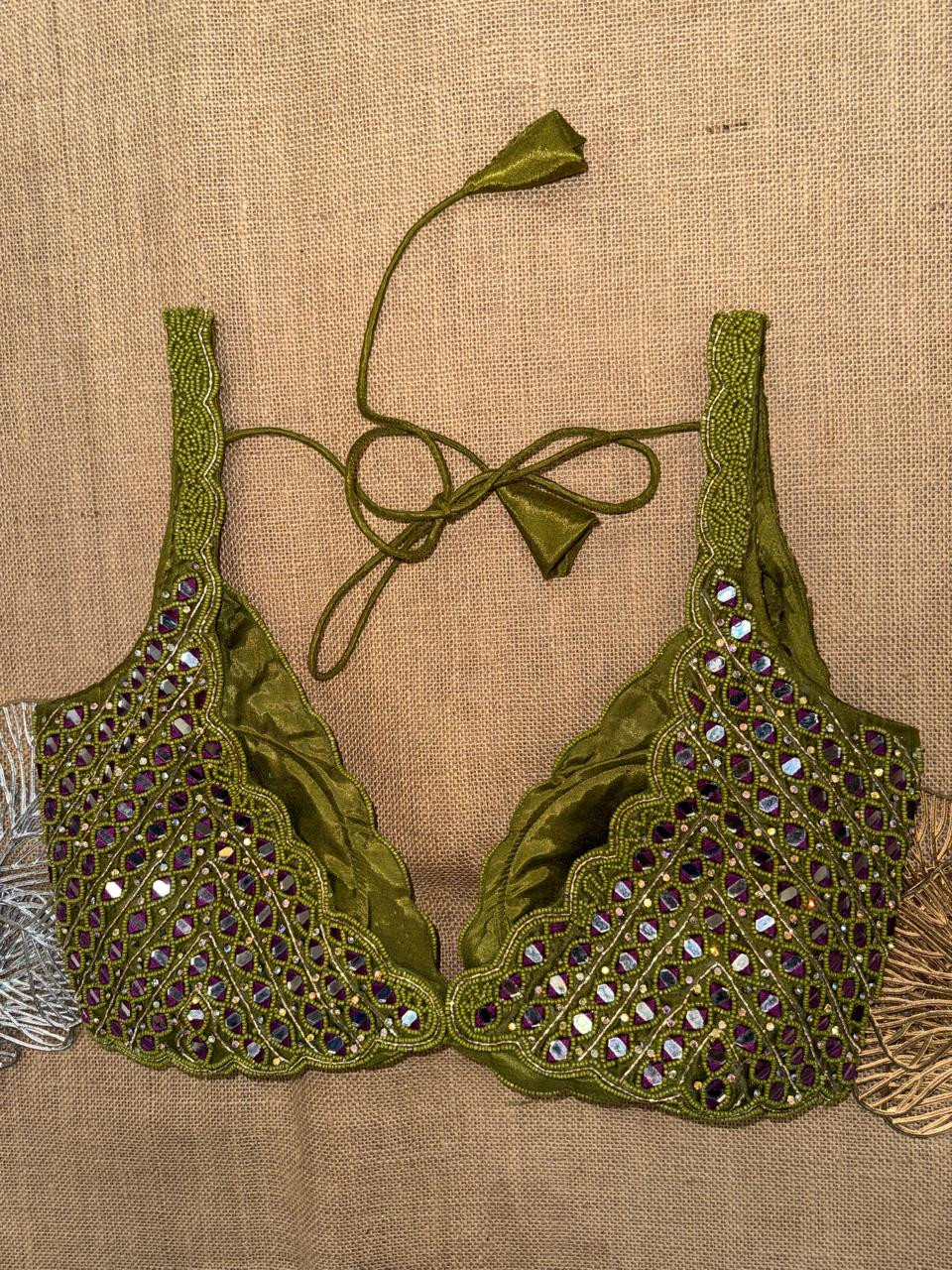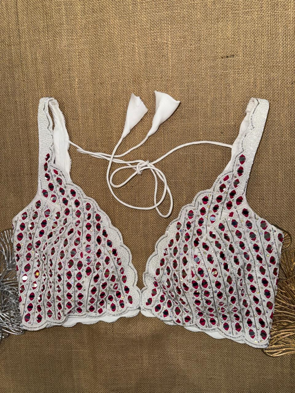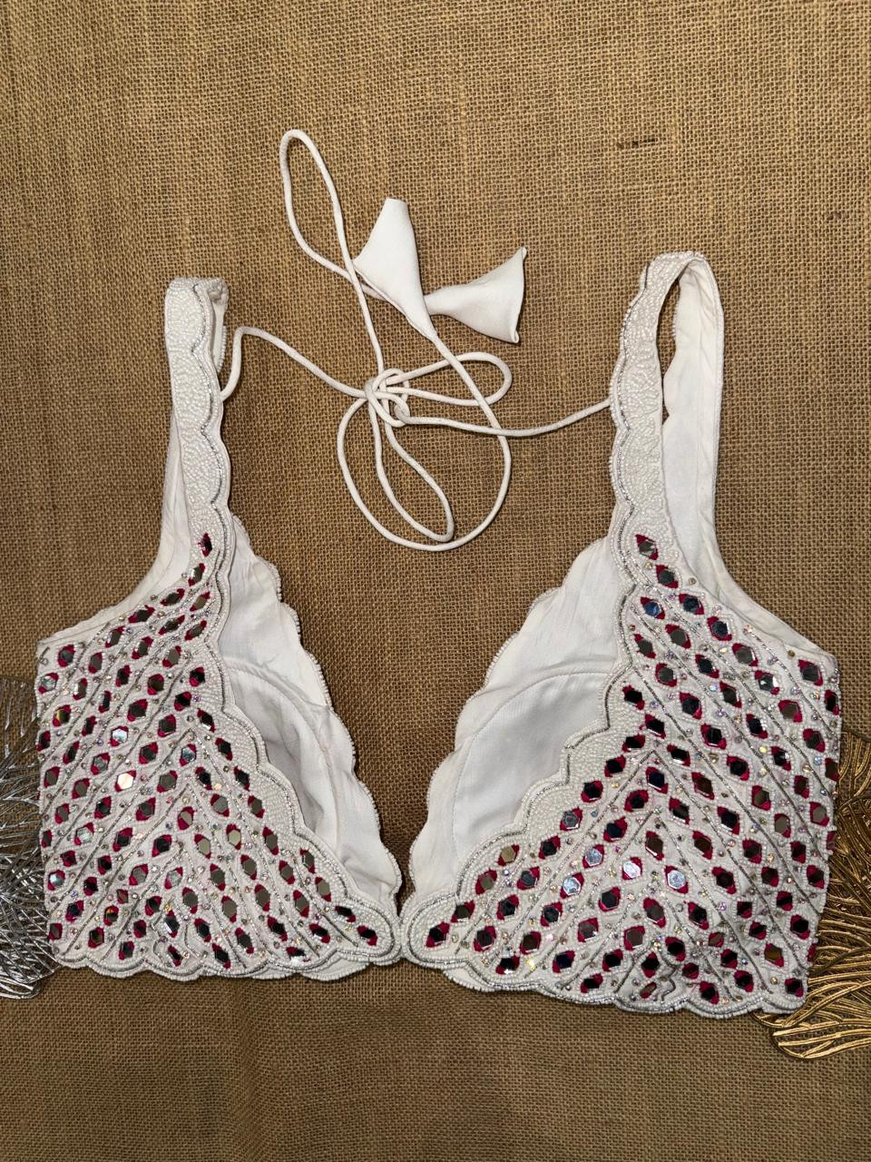 Real Mirror Bead Work Sleeveless Sari Blouse
