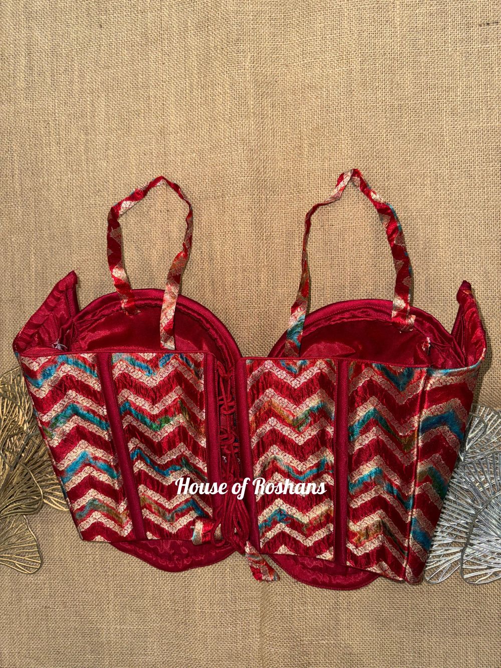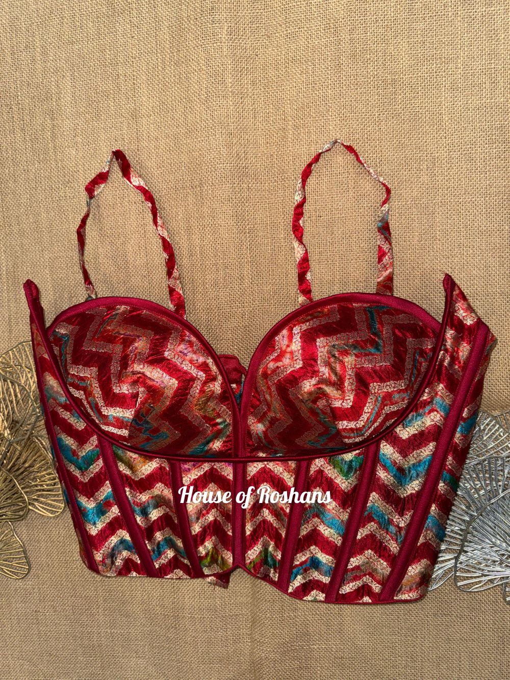 Red Zigzag Print Strappy Short Corset