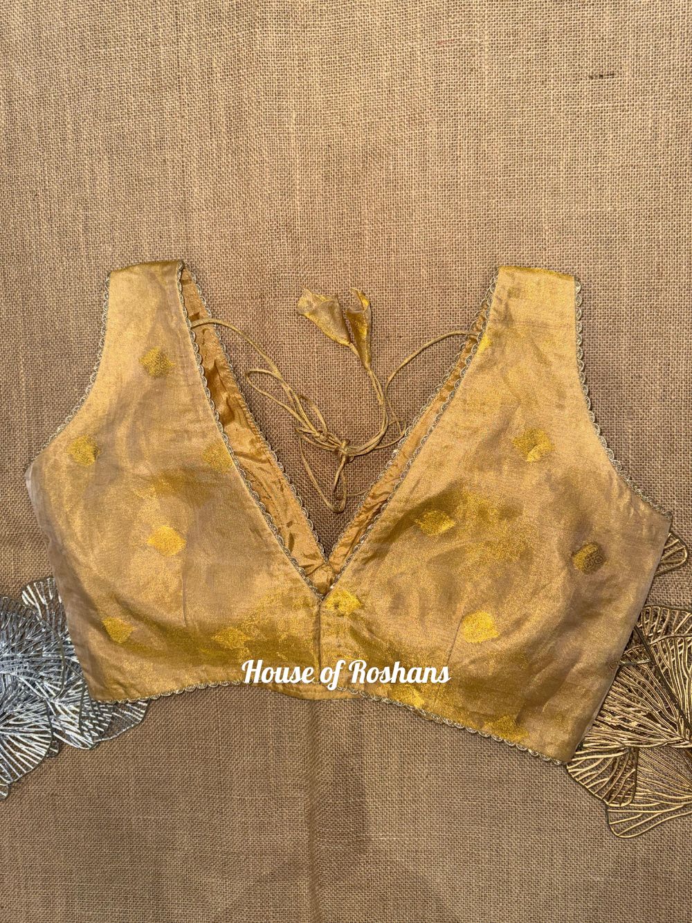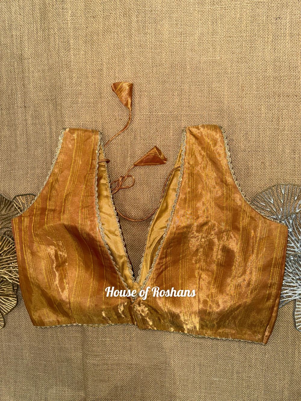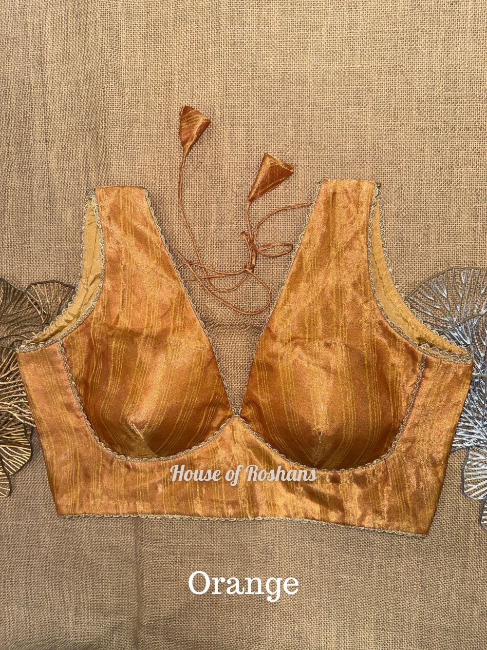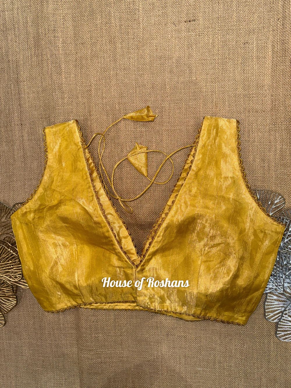Solid Sleeveless Tissue Saree Blouse with lace
