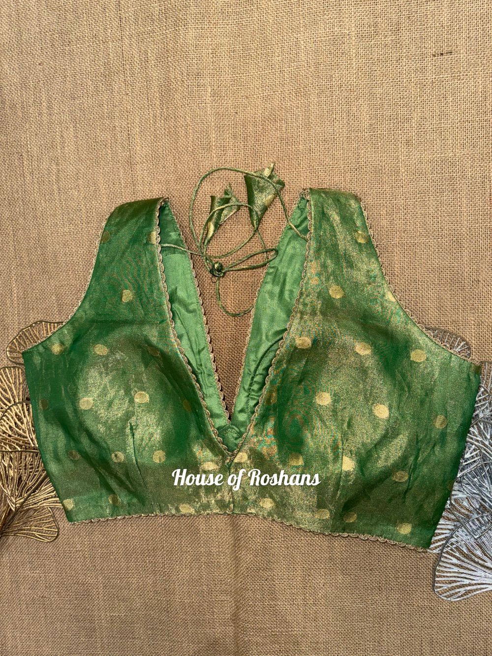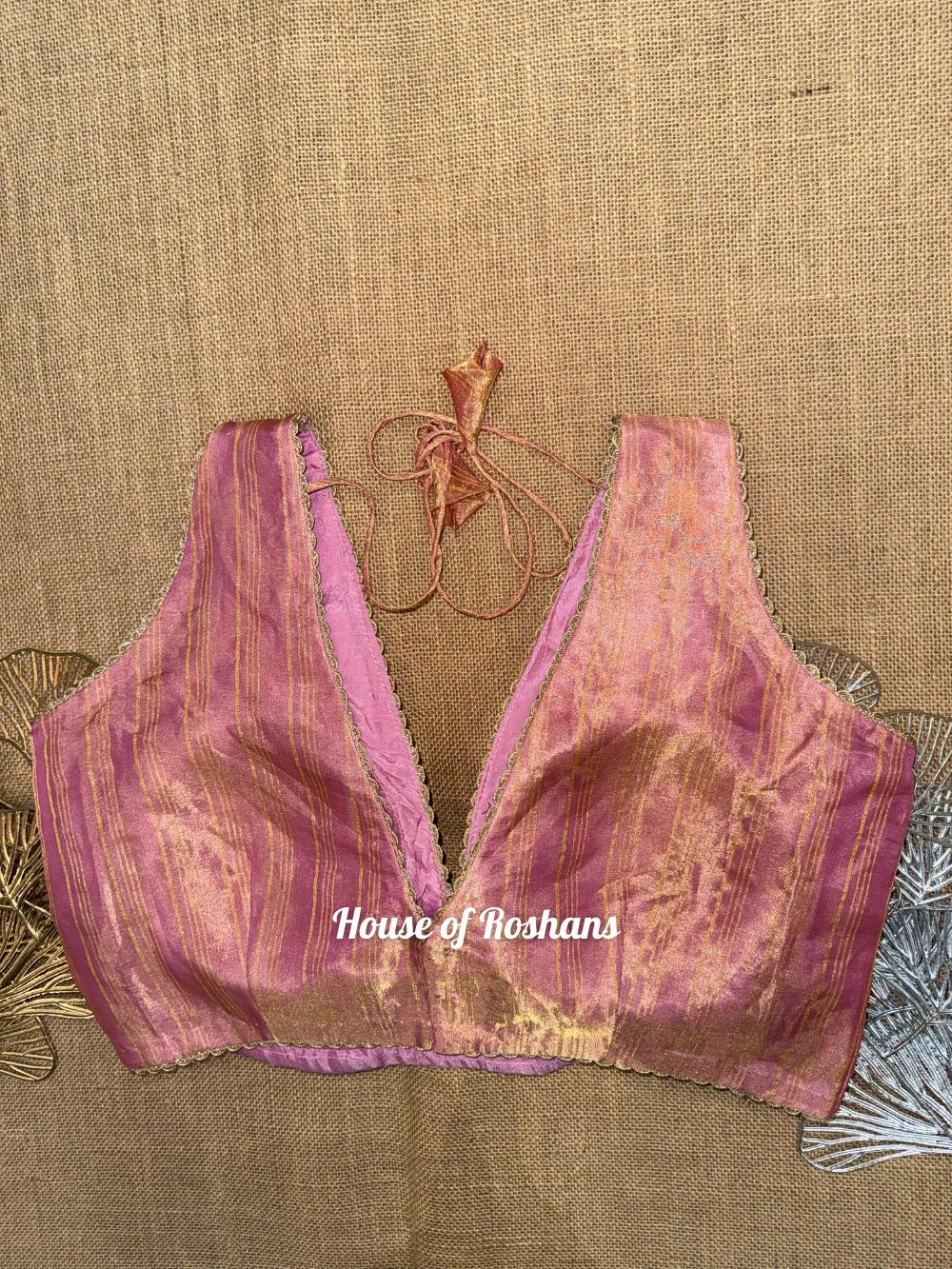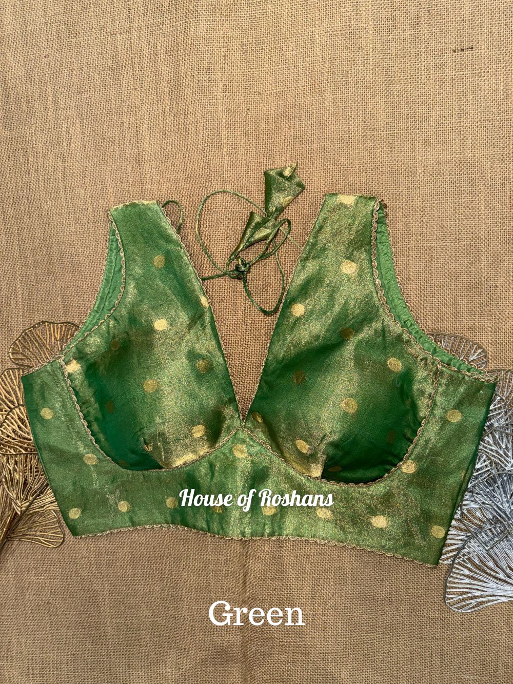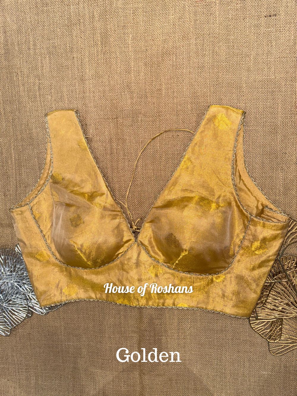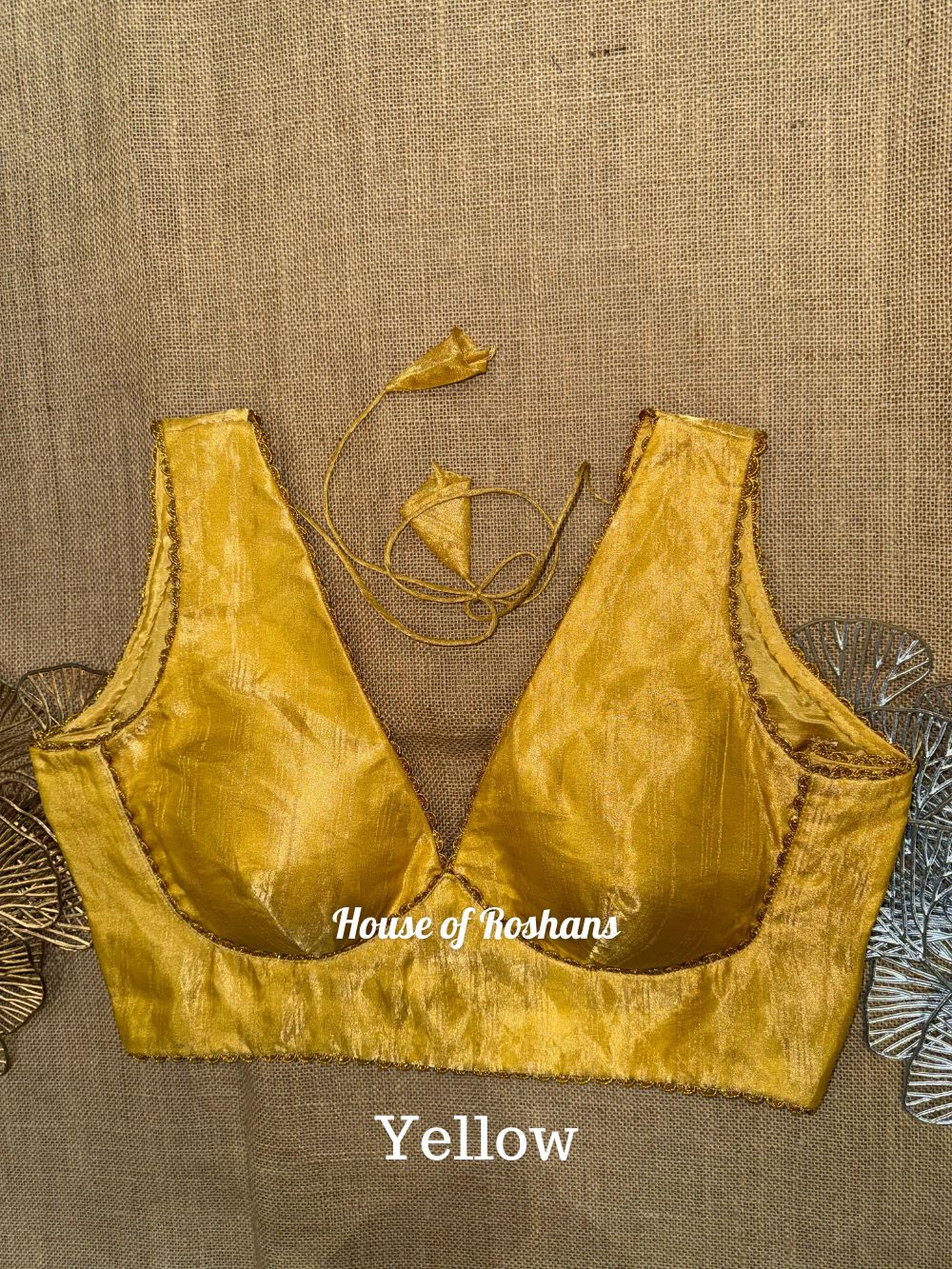 Solid Sleeveless Tissue Saree Blouse with lace